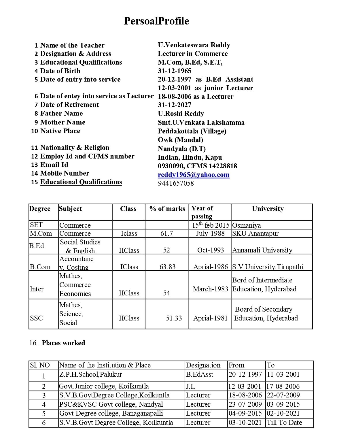 U.Venkateswara Reddy | Lecturer in Commerce | M.Com, B.Ed. | 25 | VIEW |
